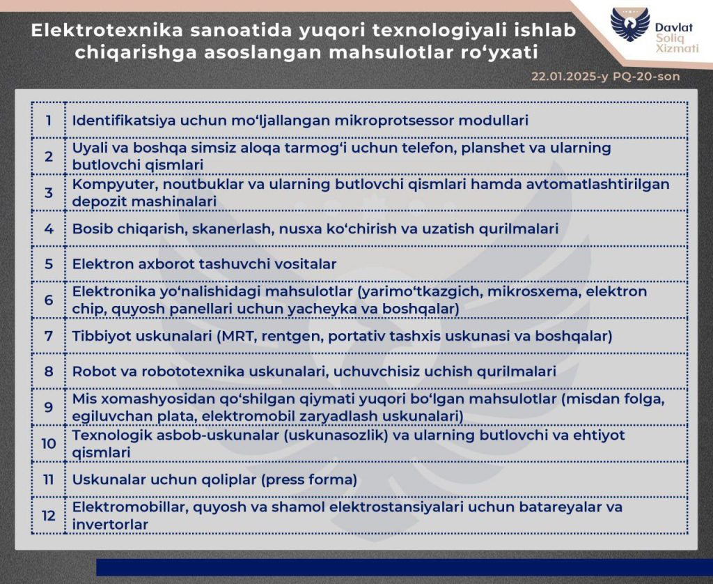✔️joqarı texnologiyalar tiykarında ónimler islep shigarıwdan alınatuģın dáramatları bóleginde payda salıǵınıń 0% stavkasın qollanıw;