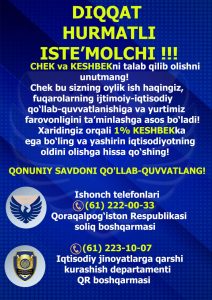 #yashirin_iqtisodiyot DIQQAT HURMATLI ISTE’MOLCHI !!! 🧾Chek talab qilib olishni unutmang❗️ Chek bu sizning oylik ish...